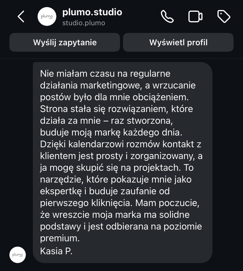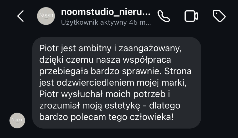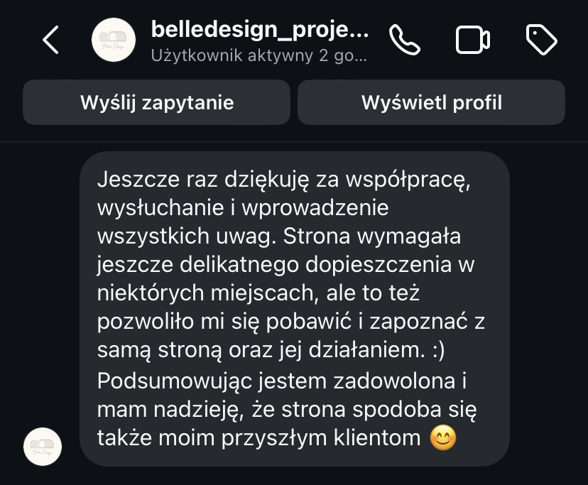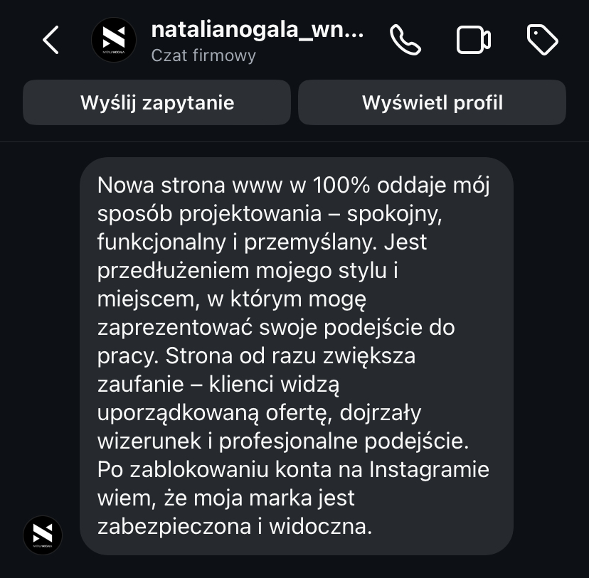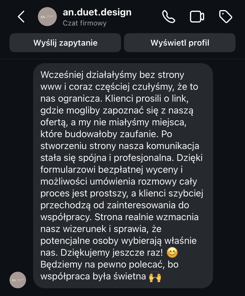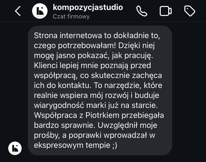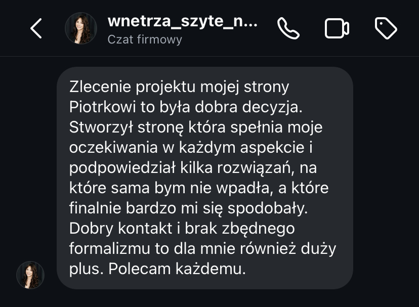 „Strona www daje mi spokój, bo wiem, że moja marka jest widoczna i działa 24h na dobę.”