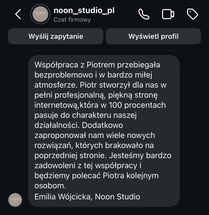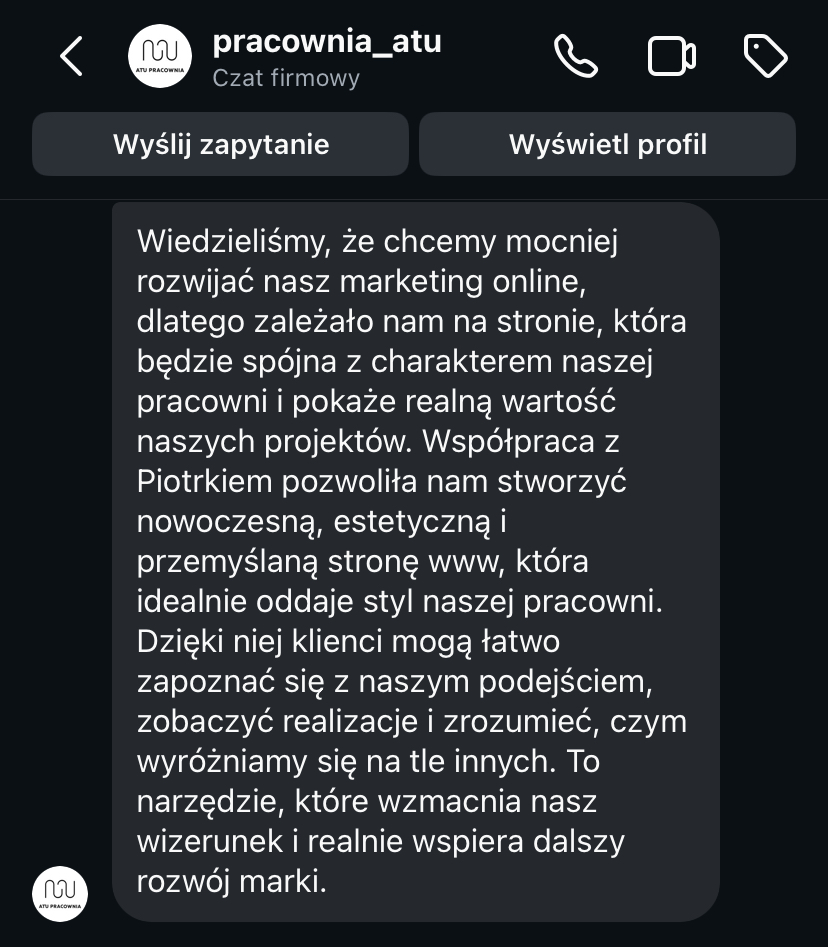 „Nasza nowa strona internetowa odzwierciedla potencjał, który Piotr wydobył z naszej pracowni.